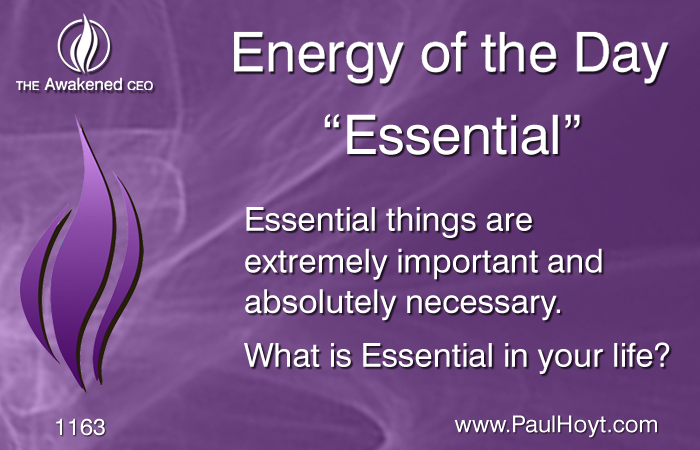 As it turns out, very few things are Essential in life. Food, air, water, and rest are at the foundation, and most people consider safety to be Essential, too. So ask yourself: do you really need those new clothes, cars, houses, and toys? How about wisdom and love? Are they Essential to you, too? Are you focusing on them as if they were?